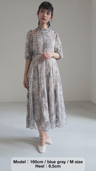[ Dorry doll ] フラワーエンブロイダリードレス 9447-bluegray