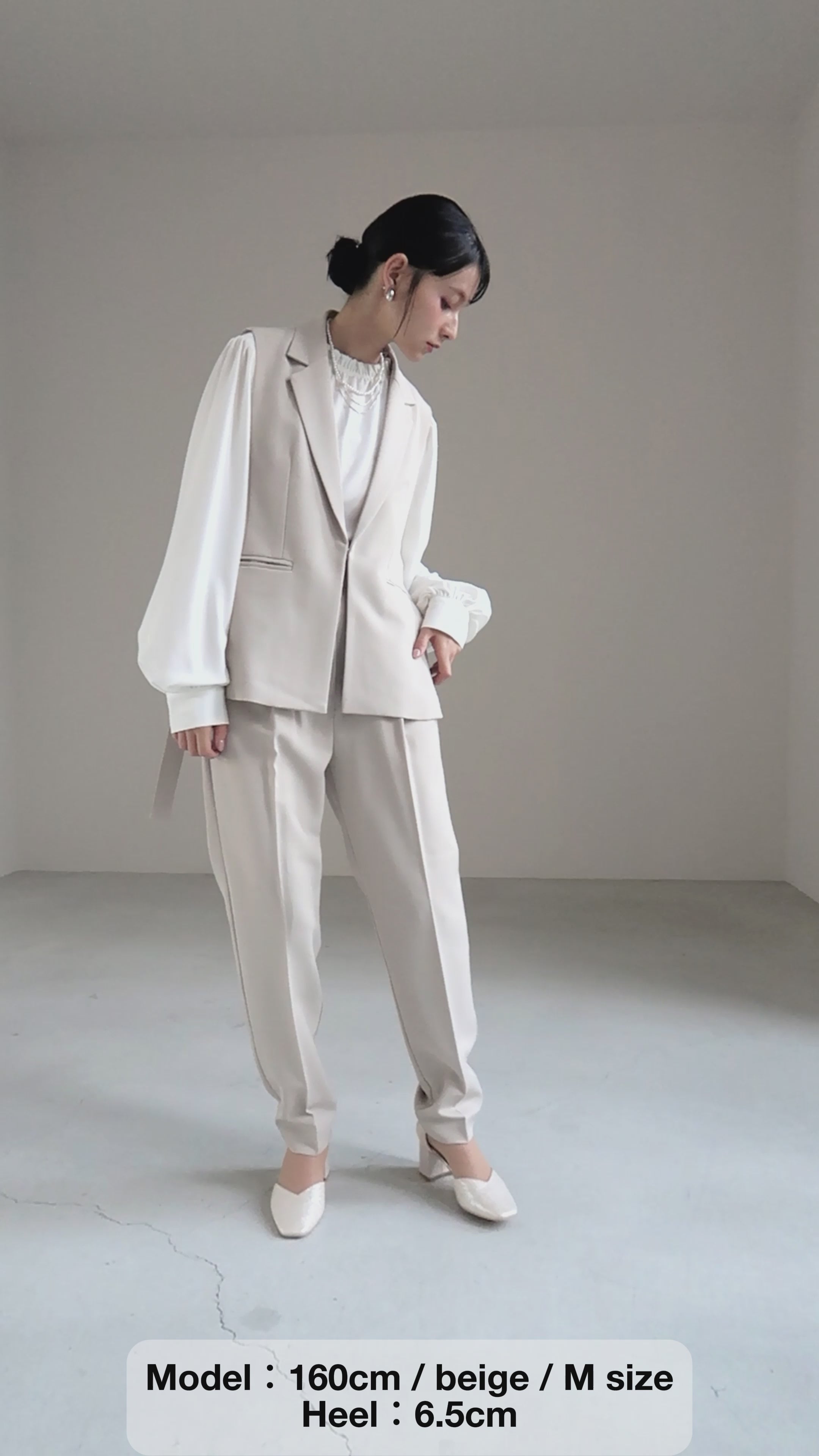 【洗練も体型カバーも叶える、サイドベルト付きジレセットアップ】
